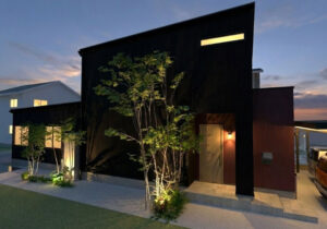 落ち着いた濃色の外壁が、建物全体をシャープに見せ、周囲の景色の中でも凛とした佇まいを演出。