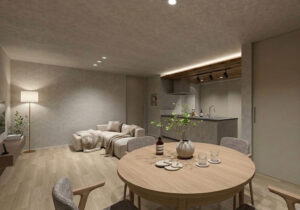 白・黒・グレーのモノトーンを基調とし、無駄を削ぎ落としたホテルライクな空間に仕上げました。限られた面積を逆手に取り、リビングに3mの高天井を設けることで縦への視線を開放しました。数値上の広さを超えた開放感がLDK全体を優しく包み込みます。コンパクトながらも贅沢な究極のプライベート空間が完成しました。